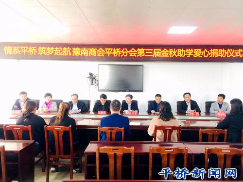 10月21日上午,平桥区举行“情系平桥 筑梦起航 ”第三届金秋助学爱心捐助活动。区委常委、区政府副区长江玉安,区委统战部副部长、区工商联书记王兴斌,区教体局党组书记、局长刘浩,河南省豫南商会平桥分会代表、贫困大学新生家长代表以及相关单位同志参加此次活动。会议由区委统战部副部长、区工商联书记王兴斌主持。