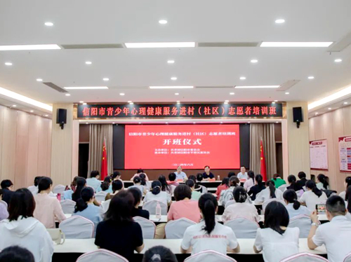 为全面贯彻落实习近平总书记关于少年儿童和少先队工作的重要论述,切实维护好青少年权益,为青少年健康成长创造良好条件,进一步提升全市青年团干部及青少年心理健康服务志愿者的政治素质和业务能力,6月25日,信阳市青少年心理健康服务进村(社区)志愿者培训班在平桥区会展中心举行开班仪式,共青团信阳市委书记陈建国、平桥区委副书记耿传清出席仪式,共青团信阳市委相关部室负责人、各团县区委青翼家园心理健康服务志愿者、各团县区委分管领导或部室负责人共计100余人参加会议。开班仪式由共青团信阳市委四级调研员、学少部部长陶艳主持。