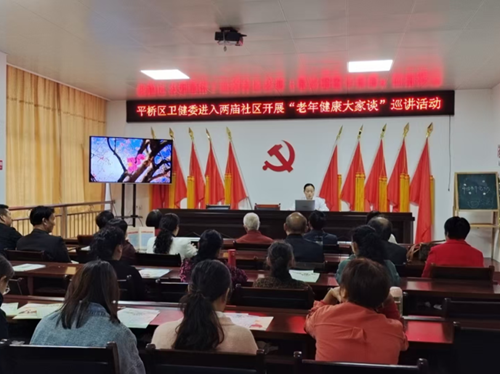 为增强居民自我健康意识,倡导健康生活方式,从而有效预防和控制老年群体患高血压等慢性疾病。近日,两庙社区联合平桥区卫健委及信阳市中心医院开展了“老年健康大家谈”预防高血压、糖尿病等基础疾病的健康专题讲座,本次讲座吸引了辖区内众多居民参与。